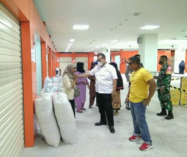 TINJAU—Wawako Matrdison Mahyuddin tinjau perpindahan pedagang pasar penampungan.