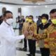 TERIMA BANTUAN— Pengurus klub sepakbola legendaris, PS Machudum’s menerima bantuan peralatan latihan dari mantan pemainnya Indra Sjafri, di RTH Imam Bonjol.