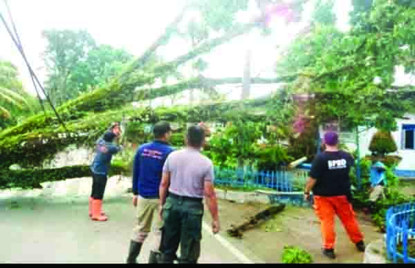Hujan disertai angin kencang melanda sebagian wilayah Kota Padang sejak Sabtu (3/4) siang hingga Minggu (4/4) dinihari, membuat puluhan pohon tumbang dan merusak rumah warga, Minggu (4/4). Batang pohon yang tumbang ini mengakibatkan rumah warga di Rawang rusak dan juga menimpa satu init mobil.