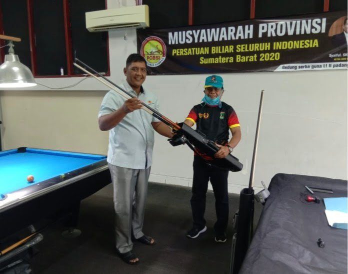 KONI Sumbar menyerahkan bantuan peralatan latihan kepada atlet biliar. Bantuan ini untuk mendukung persiapan atlet PON Sumbar menhadapi PON XX Papua, 2-15 Oktober 2021.Bantuan yang diserahkan perwakilan KONI Sumbar, Darmansyah, berupa dua paket stick, rompi, sepatu dan baju. Dan, sebelumnya juga telah diserahkan bantuan satu unit meja snooker.