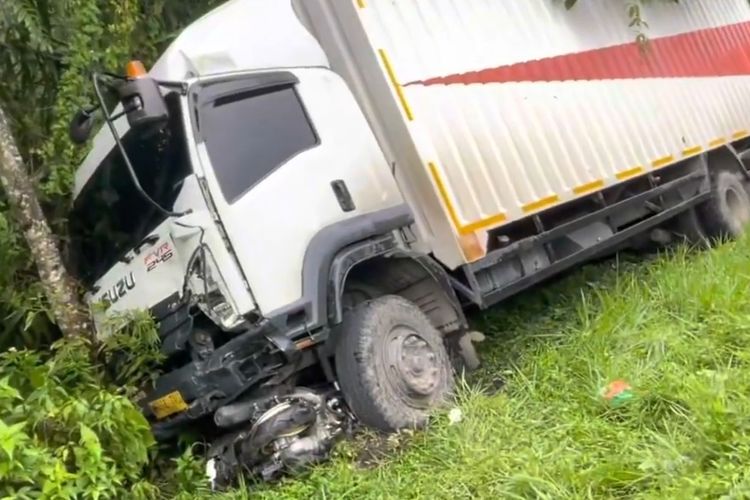 Sementara itu truk boks sebelum berhenti, sempat menabrak satu unit sepeda motor yang membuat sepeda motor tersebut terseret sejauh lebih kurang 200 meter, hingga akhirnya truk boks yang melaju dari arah Solok menuju Kota Padang tersebut berhenti di bahu jalan sebelah kanan.