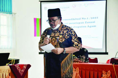 Bupati Agam Dr H Andri Warman buka sosialisasi Penerimaan Peserta Didik Baru (PPDB) tahun ajaran 2021/2022, sekaligus fasilitasi penetapan wilayah zonasi di SMAN 1 Banuhampu, Sabtu (17/4). Di mana bupati meminta peresoalan zonasi dibahas dngan khusus. Walaupun, SMA di bawah kewenangan Pemprov, namun siswa yang akan bersekolah merupaka anak nagari Luak Agam.
