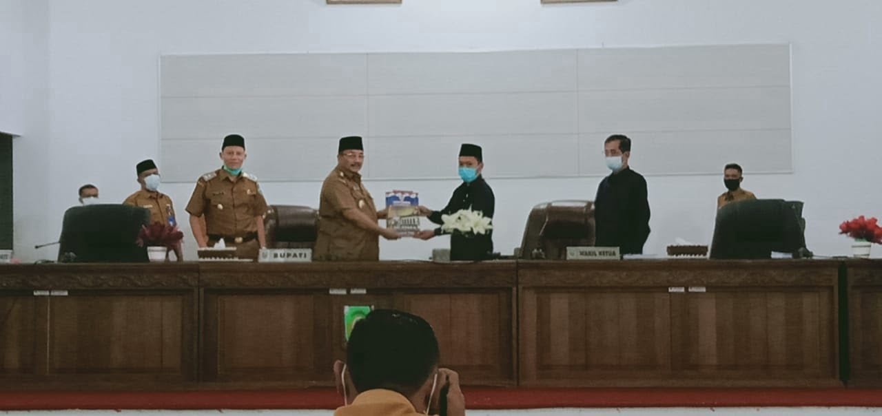 SERAHKAN—Bupati Pasaman Benny Utama serahkan Ranperda Rencana Pembangunan Jangka Menengah Daerah (RPJMD) Kabupaten Pasaman.
