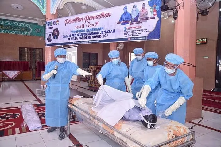 TP-PKK Kota Sawahlunto melaksanakan pesantren Ramadhan secara virtual melalui aplikasi Zoom Meeting Online “ Protokol Kesehatan Dalam Penyelenggaraan Jenazah di Masa Pandemi Covid – 19”, Senin (19/4). Di acara tersebut peserta yang hadir bisa langsung melihat praktek pemandian jenazah secara prokes.