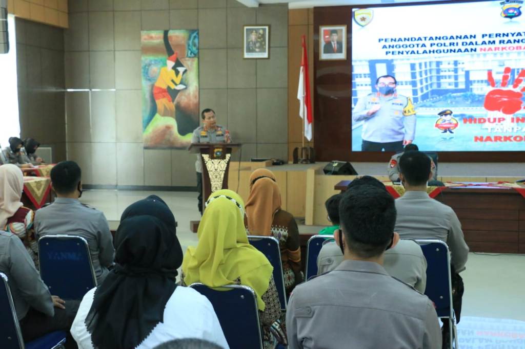 “Ini merupakan komitmen saya dan telah saya tegaskan beberapa kali pada berbagai kesempatan, kepada seluruh anggota untuk senantiasa menghindari narkoba. Dan tidak ada toleransi bagi para pengguna narkoba, mengingat dampak negatif yang sangat luar biasa baik bagi individu maupun institusi Polri,” tegas jenderal bintang dua tersebut.