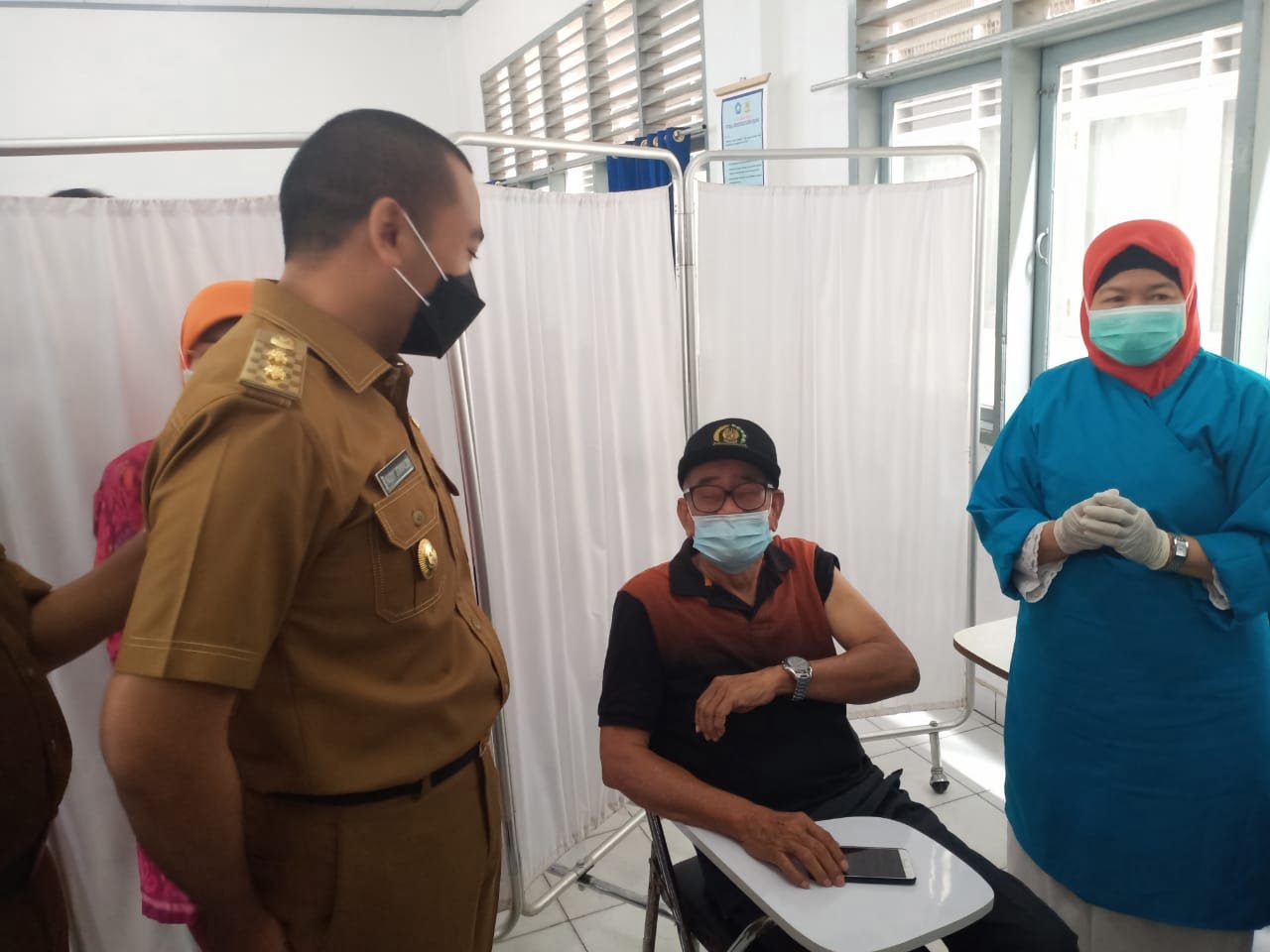 Dalam peninjauan tersebut, Wagub Sumbar Audy Joinaldy terlihat berbicara dengan salah satu orang tua yang sudah berusia 74 tahun baru selesai divaksinasi.