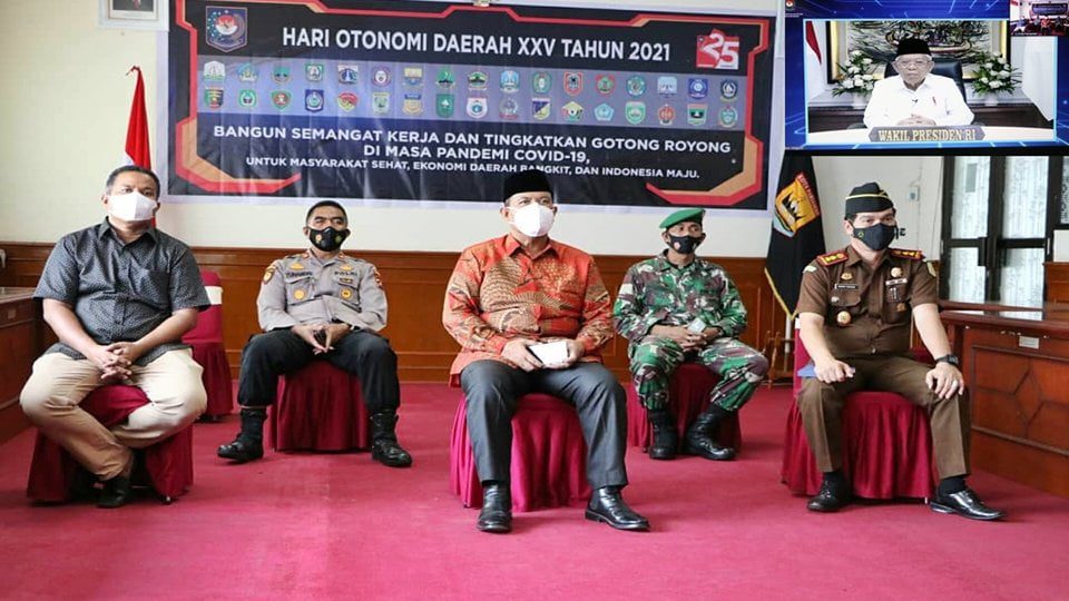 Peringatan hari otonomi daerah XXV tahun 2021 bertemakan bangun semangat kerja dan tingkatkan gotong royong di masa pandemi Covid-19 untuk masyarakat sehat, ekonomi daerah bangkit dan Indonesia maju.