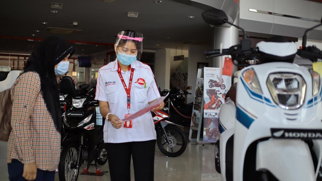 LAYANI KONSUMEN-Sales Marketing Menara Agung tengah melayani konsumen saat pembelian Honda Genio di showroom Jalan Veteran.