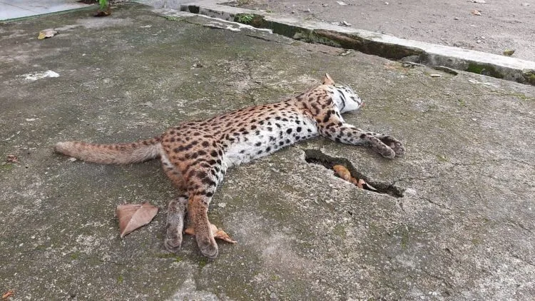 Seekor satwa dilindungi jenis kucing kuwuk (Prionailurus bengalinsis) ditemukan dalam kondisi tidak bernyawa oleh seorang warga di pinggiran jalan Pasar Inpres Lubuk Basung-Garagahan, Kabupaten Agam, Minggu (9/5).