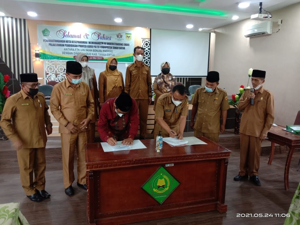 Kegiatan PPG tersebut terlaksana atas kerjasama Universitas Islam Negeri (UIN) Imam Bonjol Padang dengan Pemda/Dikbud Kabupaten Tanah Datar ditandai dengan penandatanganan kerjasama (MoU) antara pihak Pemda Tanah Datar dengan pihak UIN Imam Bonjol Padang dalam pertemuan dengan 27 orang guru yg mengikuti PPG tersebut di aula Kemenag Senin (24/5).