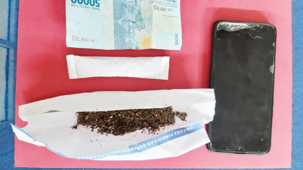 Sementara dari tangan tersangka Godri diamankan barang bukti berupa, 2 buah kertas putih berisikan diduga narkotika golongan 1 jenis ganja berbentuk ranting, daun dan biji kering, satu buah handphone android dengan merek Op­po warna hitam, dan satu lembar uang kertas pecahan Rp50.000.