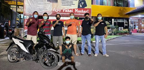 “Kasus yang menjerat tersangka berawal saat korban ketika kejadian sedang nongkrong di teras toko di TKP bersama temannya. Sedangkan sepeda motor diparkirkan korban di pinggir jalan dengan keadaan kunci di kontak kendaraan,” jelasnya.
