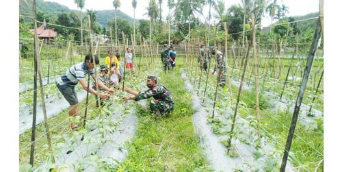 “Kedekatan dengan rakyat inilah kekuatan negara yang besar. Kita bersama menjaga kedaulatan bangsa dan negara. Kita juga membantu warga masyarakat dari segi perekonomian, maka rakyat sejahtera bangsa akan maju,” tutur Kapten Czi Alseprizal, bangga bisa membaur dengan masyarakat. (uus)