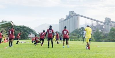 LATIHAN— Para punggawa Semen Padang FC tengah latihan di Lapangan Cubadak Indarung, Lubuk Kilangan.