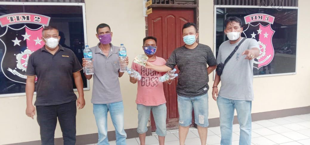 Penangkapan pertama dilakukan di kawasan pabrik karet PT Family Raya, Kelurahan Gurun Laweh, sekitar pukul 10.00 WIB. Di lokasi ini, petugas mengamankan Syamsuar (38) dan mengamankan barang bukti berupa lima buah botol air mineral kemasan 600 ml.