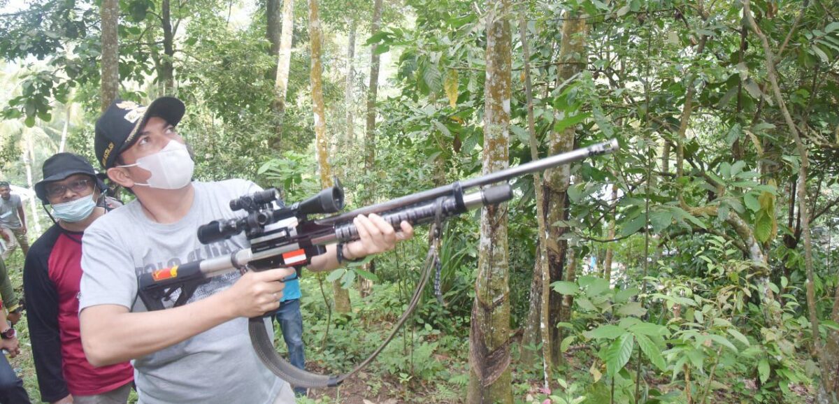 BERBURU TUPAI— WaliKota Sawahlunto Deri Asta bersama kelompok tengah berburu hama tupai untuk meningkatkan panen petani.