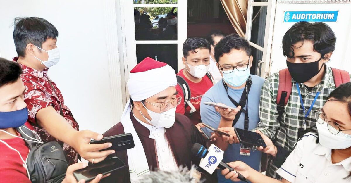 WAWANCARA—Ketua MUI Sumbar, Buya H Gusrizal Gazahar diwawancarai awak media, Rabu (7/7) di Auditorium Gubernuran, jalan Sudriman.