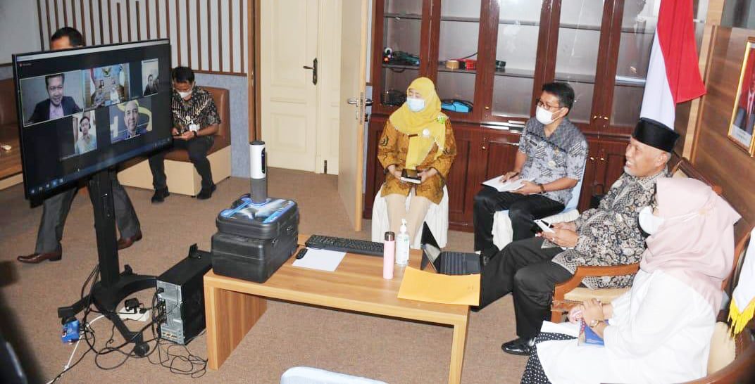 ZOOM MEETING— Gubernur Sumbar Mahyeldi mengikuti zoom meeting membahas potensi ekspor ke Afrika.