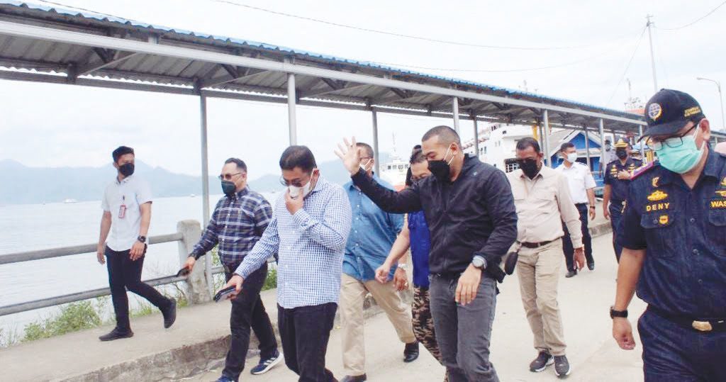 TINJAU PELABUHAN— Wakil Gubernur Audy Joinaldy meninjau Pelabuhan Bungus, Minggu (11/7). Wagub mewacanakan seluruh penumpang kapal wajib miliki sertifikat vaksin. Rencana itu akan segera dibawa dalam rapat koordinasi dengan pihak-pihak terkait.