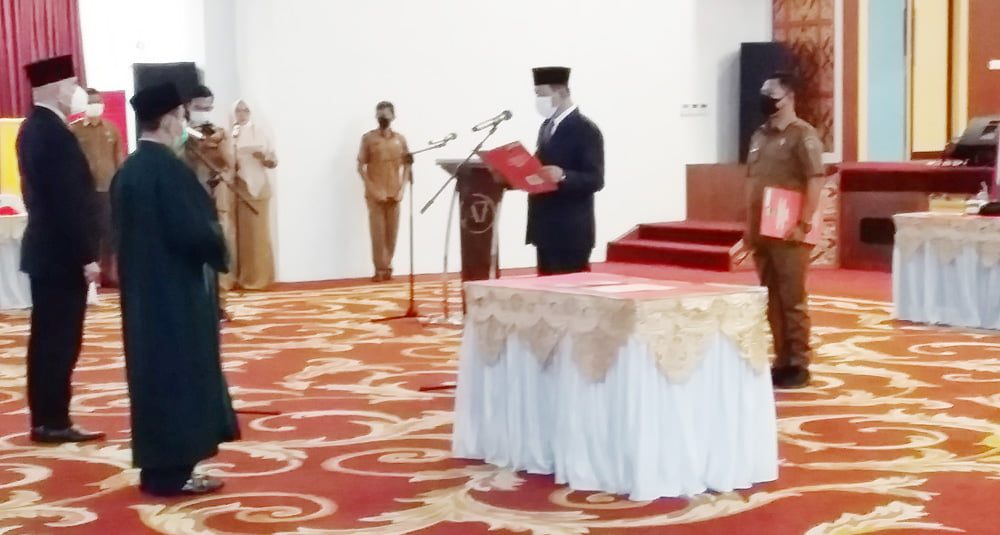 PESSEL, METRO–Bupati Pesisir Selatan Drs. Rusma Yul Anwar MPd melantik pejabat Sekretaris Daerah (Sekda), Pemkab Pesisir Selatan Drs. Luhur Budianda, SE, MSi, Senin (12/6/2021) di Gedung Painan Convention Center ( PCC).