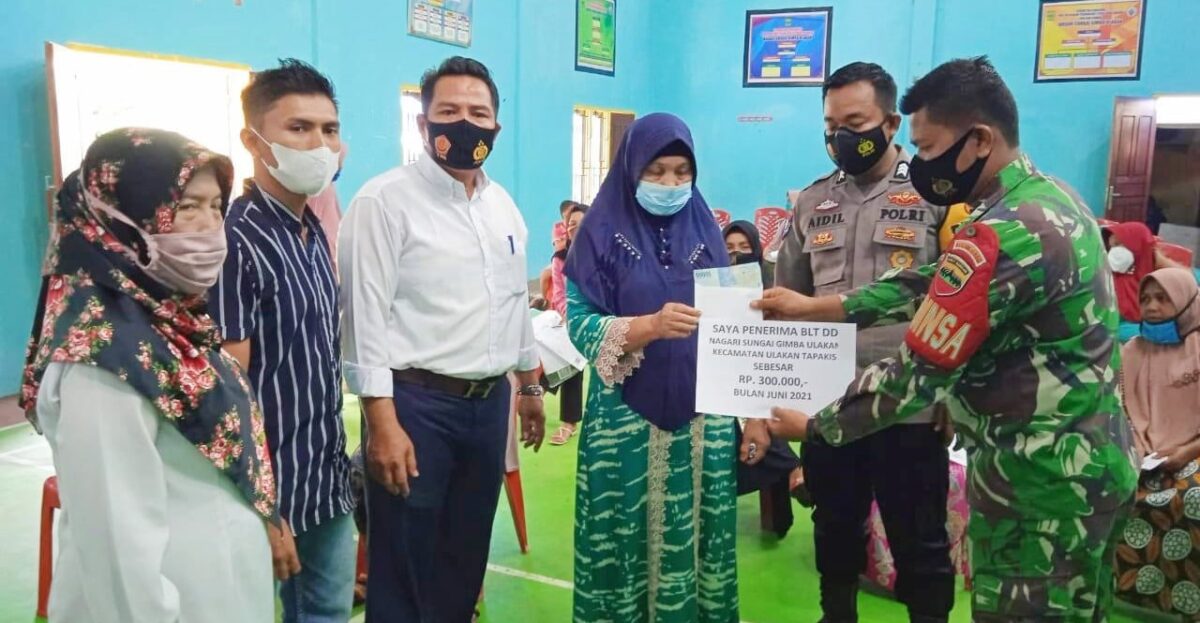 Penyerahan BLT DD bulan Januari sampai Mei 2021 bantuan diantar oleh petugas, langsung ke ru­mah-rumah warga yang terdaftar sebagai Keluarga Penerima Manfaat (KPM). Dan untuk BLT-DD bulan Juni 2021 penyerahannya di Kantor Wali Nagari Su­ngai Gimba Ulakan Keca­matan Ulakan Tapakih (Ul­tap) Kabupaten Padang­pariaman.