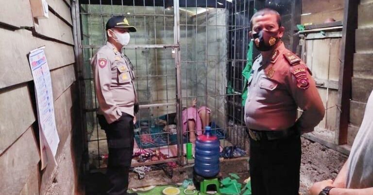 “Saat tiba di dalam rumah ditemukan seorang perempuan dalam kondisi tangan terikat rantai dan digembok. Diduga perempuan Inisial S dikurung dalam jeruji dan dirantai sejak 4 hari yang lalu di rumah M yang merupakan kakak kandung dari S ,” kata AKP Aditya Lidarman, Rabu (14/7).