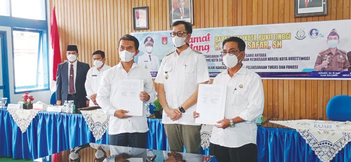 BUKITTINGGI, METRO–Guna peningkatan kerjasama dan koordinasi dalam mendukung Pelaksanaan Tugas dan Fungsi, Perusahaan Umum Daerah (Perumda) Air Minum Tirta Jam Gadang melakukan perjanjian kerjasama dengan Kejaksaan Negeri Bukittinggi. Penandatanganan peranjian kerjasama itu, dilaksanakan di Aula Kantor Perumda Air Minum Tirta Jam Gadang Bukittinggi, Rabu (14/7).