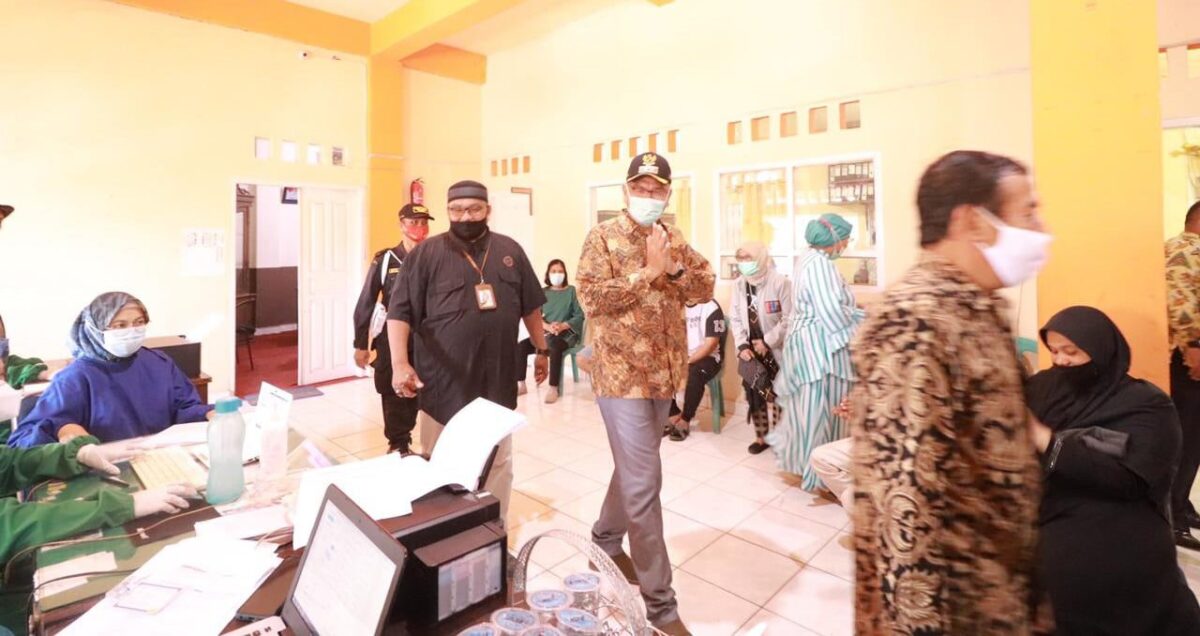 IBUAH, METRO–Wali Kota Payakum­buh Riza Falepi meninjau langsung pelaksaan geb­yar vaksinasi yang dilak­sanakan oleh Dinas Ko­perasi dan UKM untuk pedagang pasar tradi­sional ibuh, Kamis (15/7).