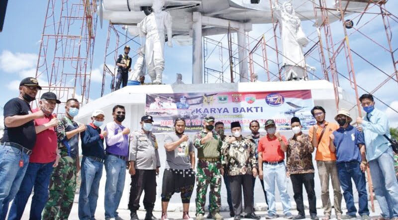 AGAM, METRO–TNI Angkatan Udara Republik Indonesia (AURI) bersinergi dengan Pemkab Agam dalam melaksanakan karya bakti pembersihan monumen Avro Anson RI 003, di Nagari Gadut, Kecamatan Tilatang Kamang, Minggu (25/7).