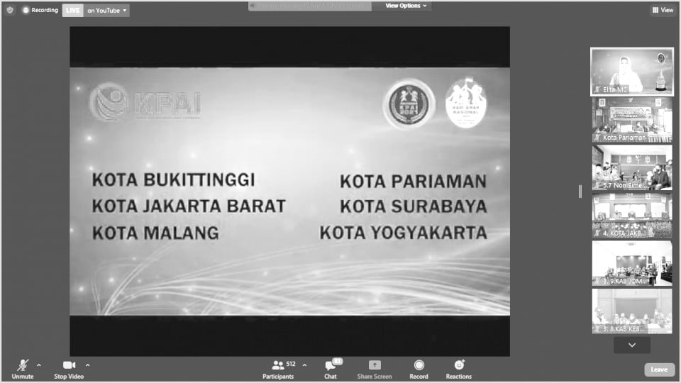Sementara dalam rangka memperingati Hari Anak Na­sional (HAN) 2021, Komisi Perlindungan Anak Indonesia (KPAI) menyelenggarakan  Anugerah KPAI 2021 secara daring.  Untuk Kota Pariaman kegiatan tersebut diikuti oleh secara zoom meeting oleh Walikota Pariaman, Genius Umar, didampingi oleh Ketua TP PKK Kota Pariaman, Lucya­nel Genius, Plt. Kadis P3AKB Kota Pariaman Noviardi, Kadis Kesehatan Kota Pariaman, Nazifah.