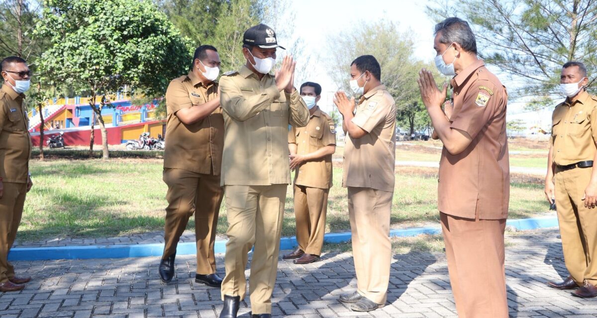 Ada yang hal berbeda dengan pelantikan kali ini, usai dilantik, Genius perintahkan ASN untuk goro membersihkan kawasan tersebut.