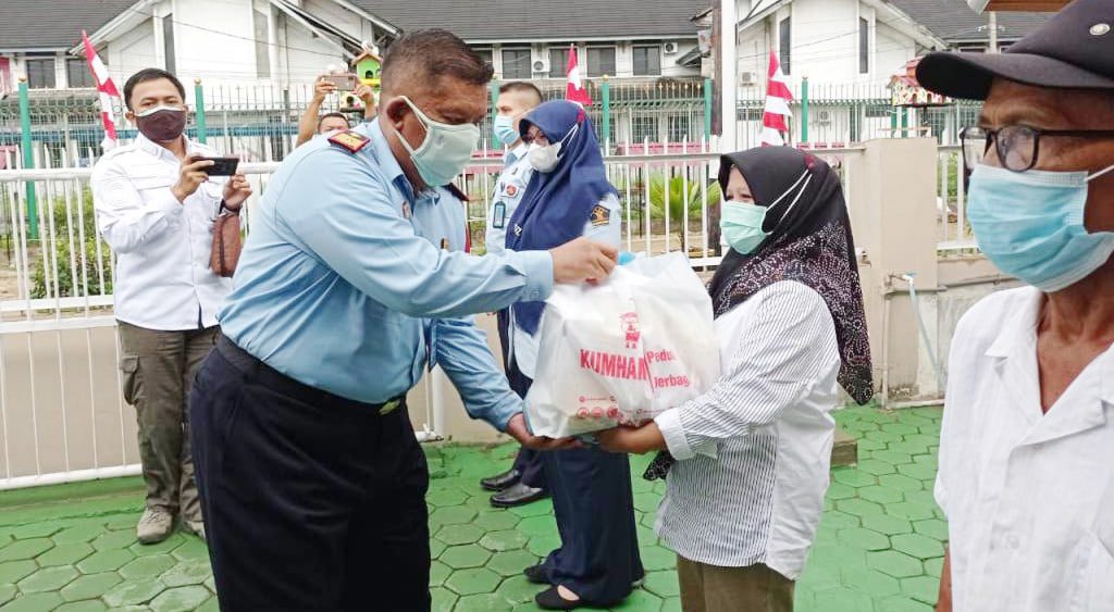 S.PARMAN, METRO–Sebanyak 1.235 paket sembako diberikan Kanwil Kemenkumham Sumbar kepada masyarakat yang berdampak pandemi covid-19, Kamis (29/7). Untuk penyaluran bantuan di zona 1 dipusatkan pada Rumah Dinas Kepala Kanwil Kemenkumham Sumbar dan juga dihadiri oleh perwakilan Wakil Gubernur, Perwakilan BINDA, Ketua LKAAM, serta Pejabat Dinas Sosial.