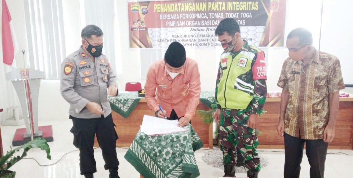 Isi pakta integritas yang disepakati itu yakni akan berperan secara proaktif dalam upaya mensosialisasikan efek dan bahaya Covid-19 serta manfaat protokol kesehatan. Sehingga, menunjukkan tata cara pelaksanaan protokol kesehatan yang benar pada ASN dan masyarakat.