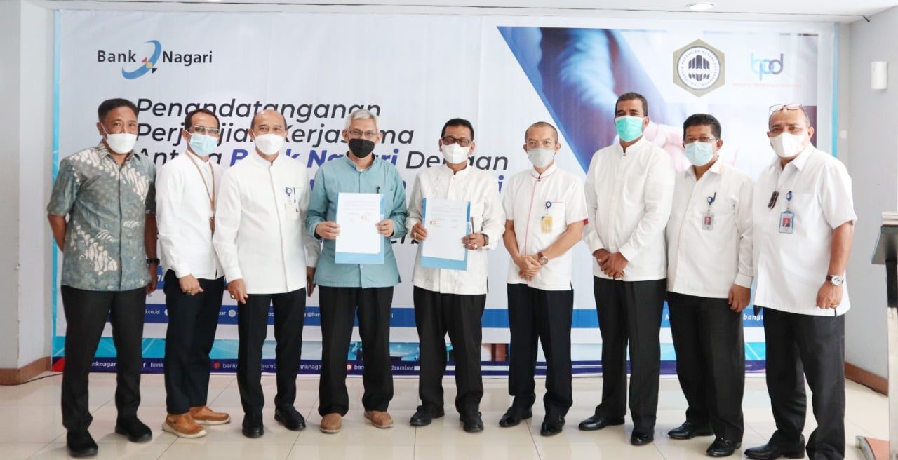 PADANG, METRO–Bank Pembangunan Daerah (BPD) Sumbar atau Bank Nagari menjalin kerja sama dengan Politeknik Pertanian (Politani) Payakumbuh tentang layanan perbankan di Padang, Jumat (30/7). Hal ini akan mempermudah semua civitas akademika melakukan transaksi yang terkait dengan kampus.