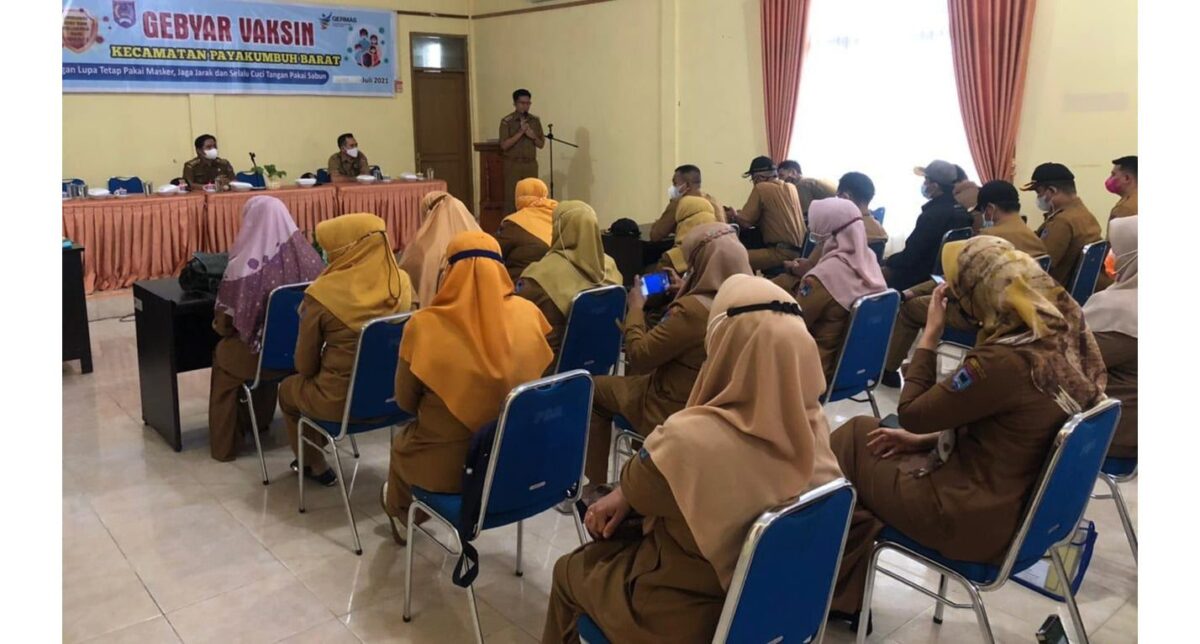 SUDIRMAN, METRO–Wakil Wali Kota Erwin Yunaz memberikan motivasi dalam breefing bersama Aparatur Sipil Negara (ASN) se Kecamatan Payakumbuh Barat di kantor camat setempat, Senin (9/8). Turut hadir Camat Ul Fakhri, Sekcam Zailendra beserta jajaran, dan lurah se kecamatan Payakumbuh Barat.