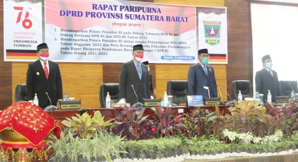 Rapat Paripurna Istimewa yang dipimpin langsung Ketua DPRD Provinsi Sumbar, Supardi tersebut digelar dalam tiga sesi yakni untuk mendengarkan pidato Presiden RI pada Sidang Tahunan MPR RI tahun 2021, kemudian pidato kenegaraan Presiden RI dalam rangka HUT ke-76 Kemerdekaan RI pada Sidang Bersama DPR RI dan DPD RI serta pidato Presiden RI dalam rangka penyampaian pengantar/keterangan pemerintah atas RUU tentang APBN tahun anggaran 2022.