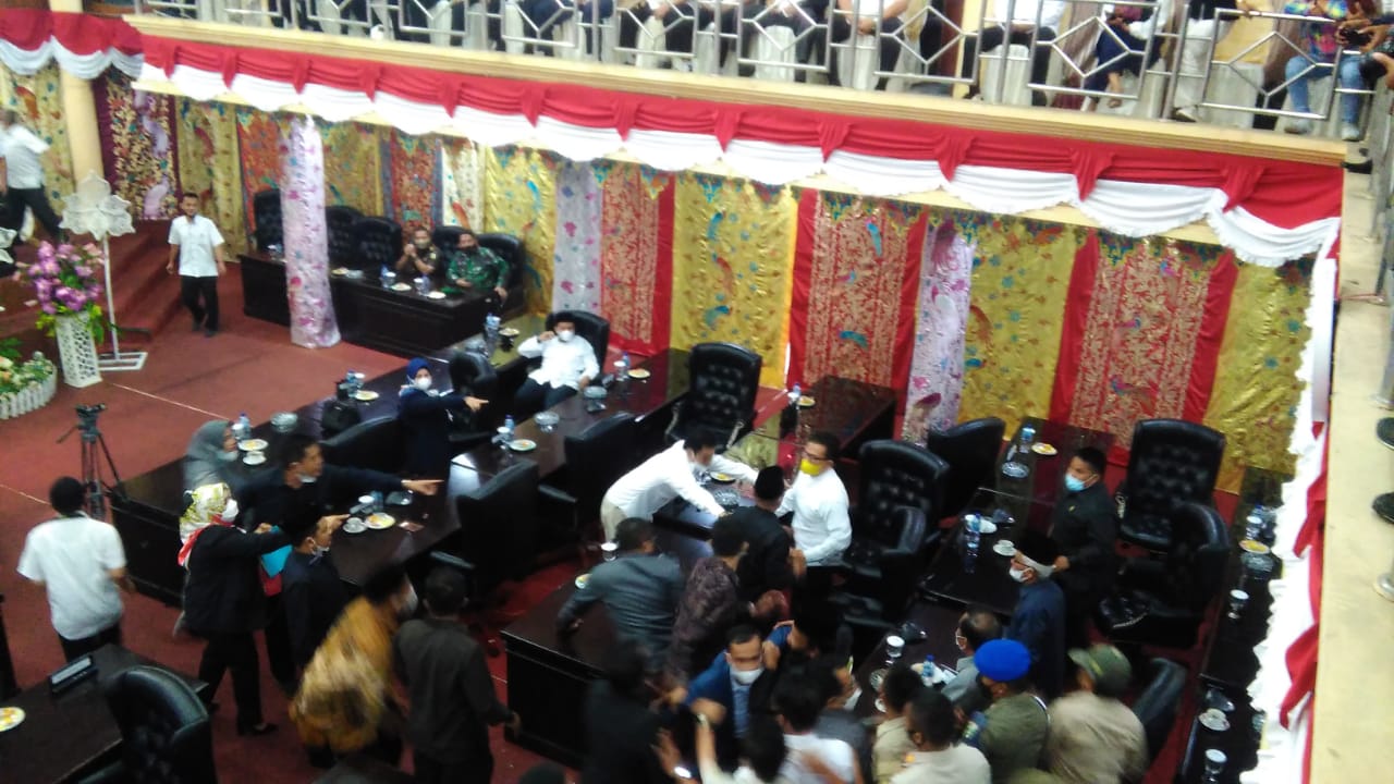 Aksi interupsi sejumlah anggota dewan terkait mempersoalkan pimpinan sidang itu, semakin memanas dan sejumlah anggota dewan tersulut emosi. Karena emosi yang tak terkendali, sejumlah anggota dewan pun terlibat aksi saling dorong untuk memisahkan dan meredakan agar tidak terjadi aksi saling pukul.
