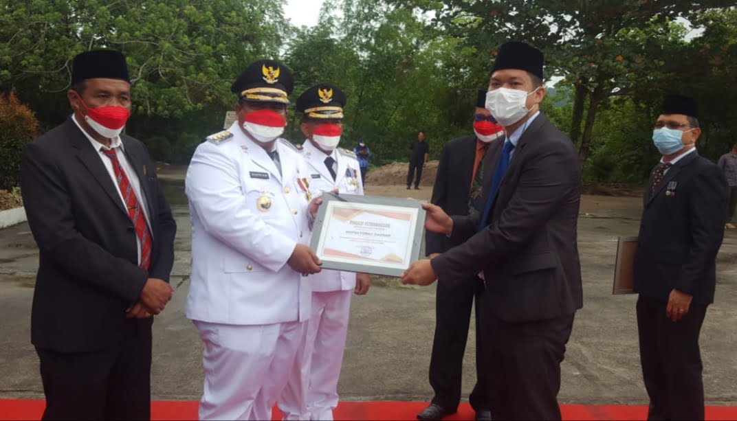 PADANGPARIAMAN, METRO–Bupati Padangpariaman Suhatri Bur kemarin menyerahkan piagam penghargaan kepada Inspektorat Padangpariaman pada Peringatan Hari Ulang Tahun Republik Indonesia ke -76.