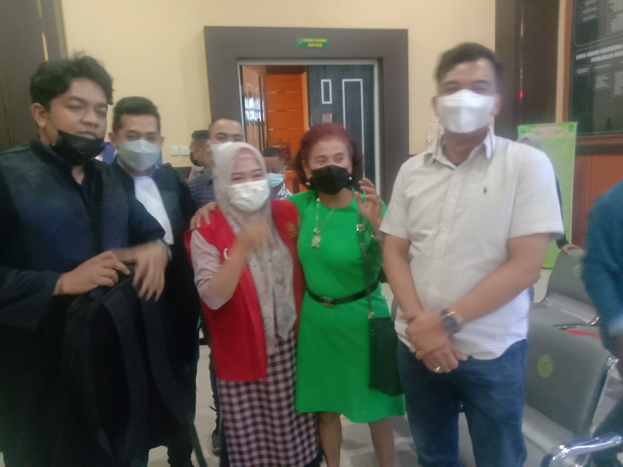 Usai divonis majelis hakim, terdakwa Dona Sari Dewi (38), foto bersama Penasihat Hukum (PH). Azimar Nursu’ Ud didampingi Daniel Jusari.