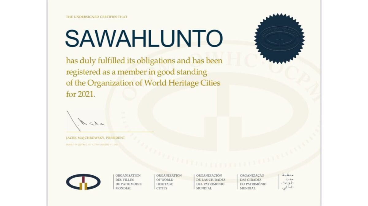 SAWAHLUNTO, METRO–Kota Sawahlunto masuk dalam keanggotaan dengan reputasi baik atau member of good standing oleh Organization of World Heritage Cities (OWHC). Hal ini mencerminkan OWHC mengapresiasi peran aktif Kota Sawahlunto di forum kota – kota pusaka/warisan dunia tersebut.