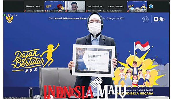 KHATIB, METRO–Kanwil DJP Sumatera Barat dan Jambi menye­lenggarakan kegiatan Pajak Bertutur Tahun 2021 dengan tema “Generasi Muda Sadar Pajak, Wujud Bela Negara”. Kegiatan tersebut dilaksanakan serentak se-Indonesia secara virtual melalui aplikasi Zoom Cloud Meetings dan dihadiri langsung oleh Men­teri Keuangan Sri Mul­yani, Direktur Jenderal Pajak Suryo Utomo, dan Mendikbud Ristek Nadiem Makarim serta diikuti oleh siswa SMA dan mahasiwa dari berbagai universitas.