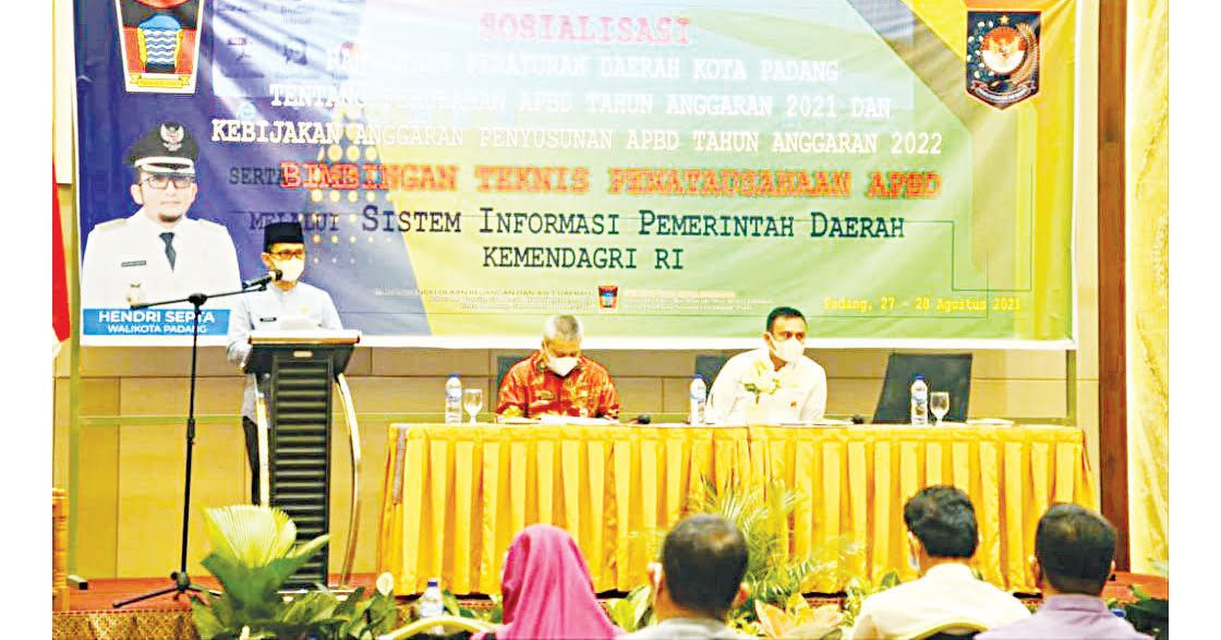 THAMRIN, METRO–Pemerintah Kota Padang melalui Badan Pengelolaan Keuangan dan Aset Daerah (BPKAD), menggelar sosialisasi Ranperda Kota Padang tentang Perubahan APBD Tahun Anggaran (TA) 2021 dan Kebijakan Anggaran Penyusunan APBD 2022 selama Jumat dan Sabtu (27-28/8) di Hotel Grand Zuri. Selain sosialisasi juga dilakukan Bimbingan Teknis (Bimtek) Penatausahaan Anggaran Melalui Sistem Informasi Pemerintah Daerah (SIPD) Kemendagri.