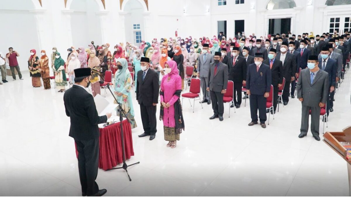 BUKITTINGGI, METRO–Wali Kota Bukittinggi melantik sebanyak 175 pejabat struktural di lingkungan Pemko Bukittinggi, Jumat malam (27/8). Uniknya, pelantikan massal ini, dilaksanakan di Balairung Rumah Dinas Walikota Bukittinggi.