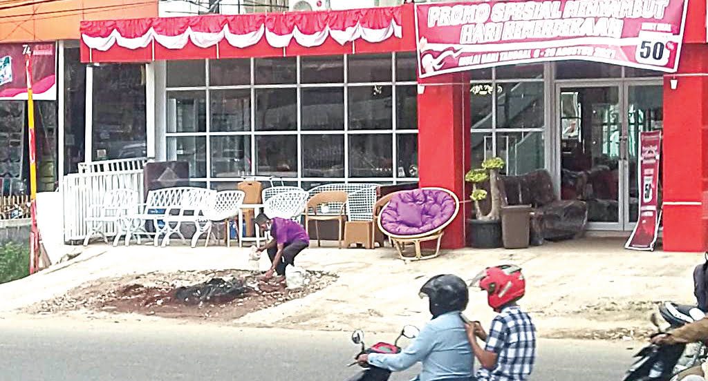 Namun, Jumat (3/9) terlihat bekas pohon yang ditebang tersebut telah hilang ditutup oleh coran semen yang menutup trotoar keseluruhan.