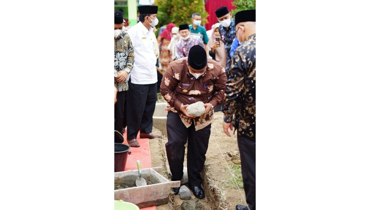 PADANGPARIAMAN, METRO–Bupati Padangpariaman Suhatri Bur kemarin bersama Wakil Bupati Padangpariaman Rahmang meletakan batu pertama sarana ibadah MTsN 2 Padangpariaman.