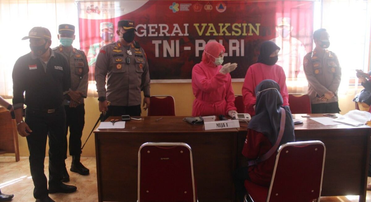 Selain melakukan per­te­muan, Kapolres juga me­­nin­jau langsung pelak­sanaan vaksinasi TNI-Polri yang digelar di kantor Wali Nagari Kamang. Vaksinasi dituju­kan kepada ma­sya­rakat setempat sebagai perce­patan penanganan Covid-19 secara menye­luruh.