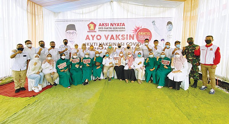 “Kami juga sudah melihat agenda vaksinasi digelar di DPC Gerindra Kota Padang dan DPC Gerindra Pasaman Barat (Pasbar). Juga akan digelar di DPC Gerindra Kabupaten/Kota lainnya di Sumbar. Semua kegiatan bekerja sama dengan Kementerian Kesehatan RI, Dinas Kesehatan Provinsi Sumbar dan Dinas Kesehatan Kabupaten/Kota,” kata ketua harian DPP Ikatan Keluarga Minang (IKM) ini.