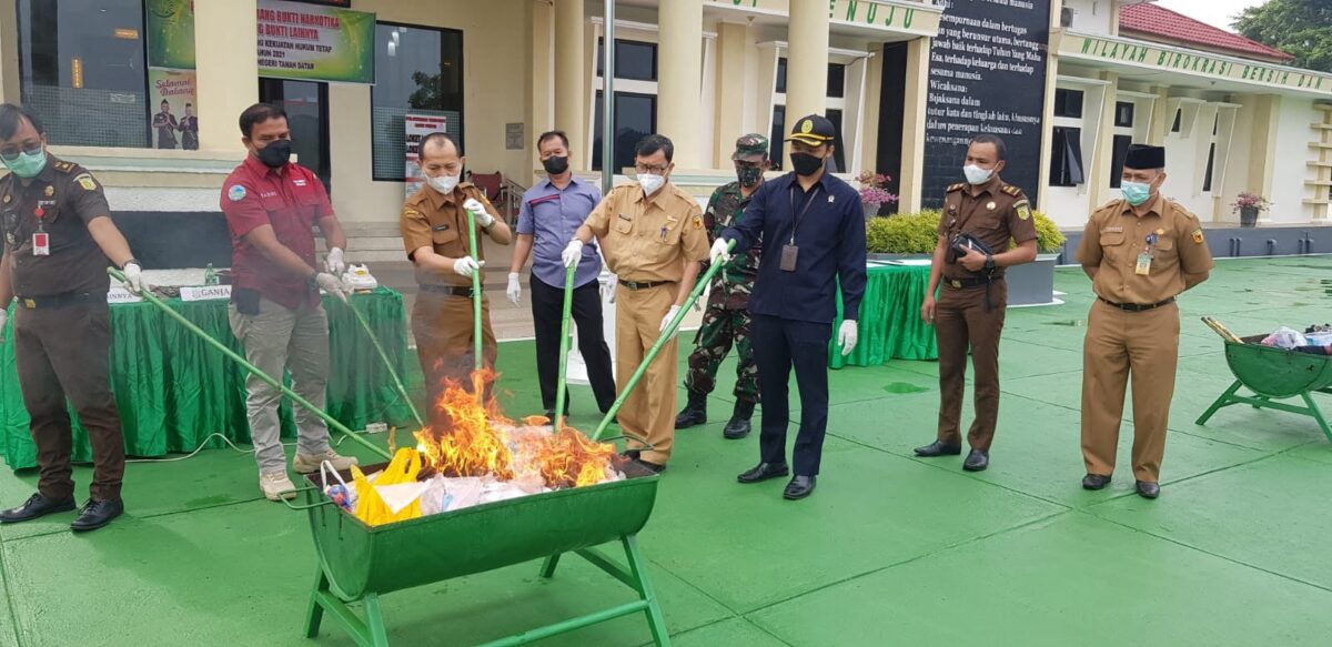 TANAHDATAR, METRO–Kejaksaan Negeri Ta­nah Datar melakukan  pemusnahan Barang Bukti (BB) Narkotika, di halaman kantor Kejaksaan Negeri Tanah Datar. “Kegiatan Pemusnahan Barang Bukti (BB) Narkotika sejak Januari 2021 sampai dengan Juni 2021 melibatkan sebanyak 22 perkara pidana Narkotika, 3 perkara pidana Kamnegtibum & TPUL, dan 6 perkara pidana dengan barang bukti berupa sabu sebanyak 283,84 gram, gan­­ja sebanyak 993,74 g­ram, timbangan Digital, beberapa buah handpho­ne, alat hisap sabu, dan barang bukti lainnya,” sebut Kajari Tanahdatar Hardijono Sidayat, Kamis (9/9).