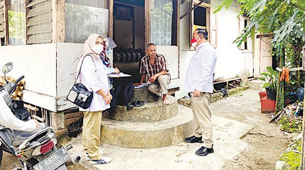 PENGECEKAN RUMAH— Anggota DPRD Padang Boby Rustam didampingi Wakil Ketua DPD Gerindra Sumbar Nurhaida melakukan pengecekan rumah yang akan dibedah melalui program usulan Anggota DPR RI Andre Rosiade.