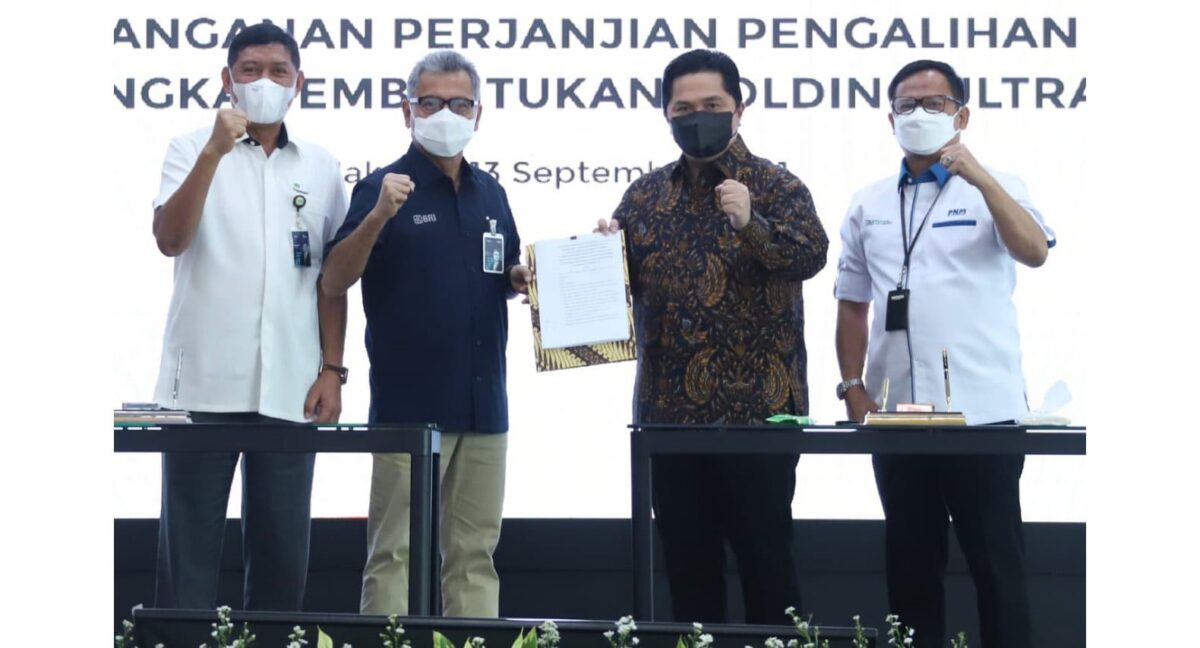 JAKARTA, METRO–Holding Ultra Mikro yang melibatkan tiga entitas Badan Usaha Milik Negara (BUMN) yakni PT Bank Rakyat Indonesia (Persero) Tbk. atau BRI, PT Pegadaian (Persero) dan PT Permodalan Nasional Madani (Persero) atau PNM resmi terbentuk. Hal ini seiring dilakukannya penandatanganan Akta Inbreng saham pemerintah pada Pegadaian dan PNM sebagai penyertaan modal negara kepada BRI selaku induk holding di Jakarta, 13 September 2021.